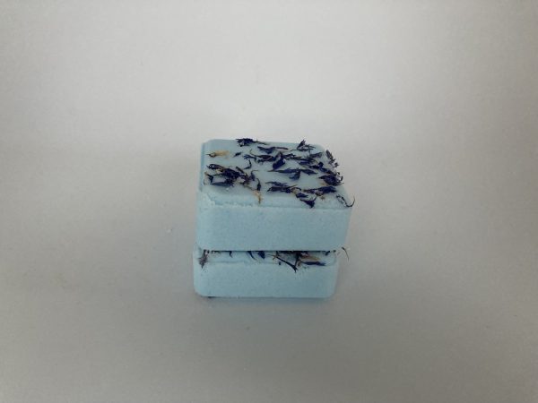 INCI: Sodium bicarbonate, Citric acid, Cocos nucifera oil*, Rosmarinus officinalis*, Centaurea cyanus leaf*, CI74180, Limonene**, Linalool**.